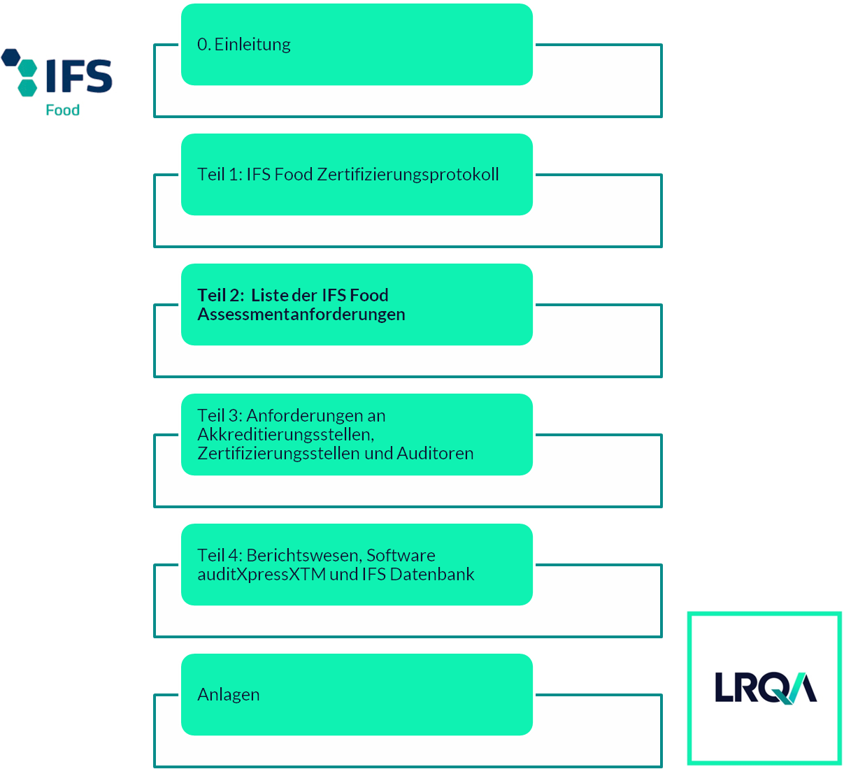 Um die Anforderungen besser nachzuvollziehen, lohnt sich vorab ein Blick in die aktuelle Version 7 des Standards. Dieser ist in sechs Teile gegliedert, wobei Teil 2 die Anforderungen an ein IFS Assessment beinhaltet.