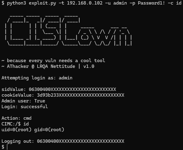 Cisco was initially informed of the issue on 06 December 2023 and began triage on 07 December 2023. The Cisco PSIRT responded within 24 hours of initial contact and promptly began working on fixes. A public disclosure date was agreed upon for 17 April 2024, and CVE-2024-20356 was assigned by the vendor with a severity rating of High (CVSS score of 8.7). I would like to thank Todd Reid, Amber Hurst, Mick Buchanan, and Marco Cassini from Cisco for collaborating with us to resolve the issue.