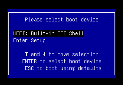 The boot device manager or EFI shell can be used to boot into an external drive containing an operating system that supports UEFI. In my case, I was using a USB stick plugged into the back of the device.