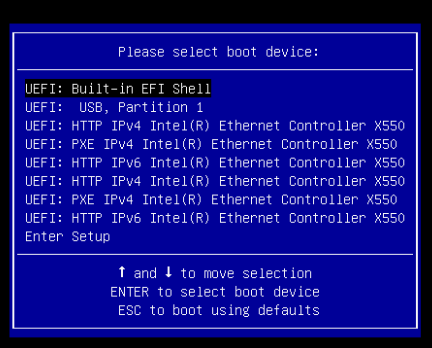 The device can then be powered back on. Upon turning on the device, a number of other boot devices were available from the Ethernet Controllers. This is a good sign, as it means more EFI modules were loaded.