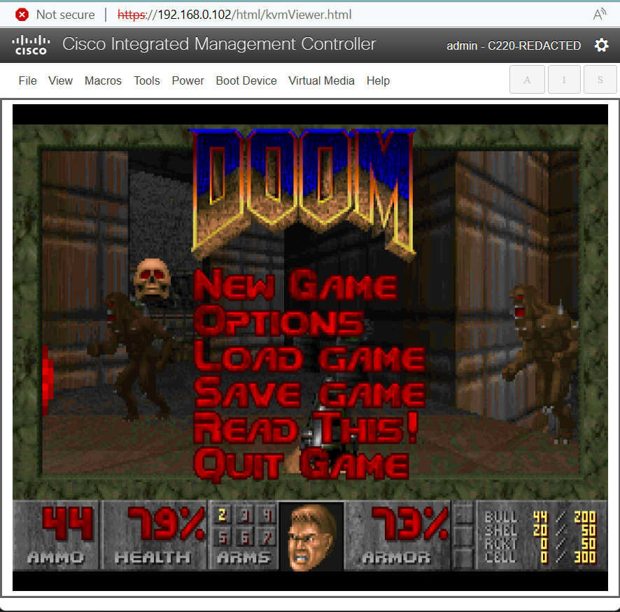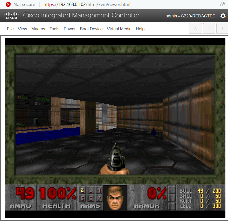 While it may seem cool to run DOOM on a Cisco Appliance device, the vulnerability exploited does pose a threat to the confidentiality, integrity and availability of data stored and processed on the server. The issue in itself could be used to backdoor the machine and run unauthorised code, especially impactful given that the body management controller has a high level of access throughout the device.