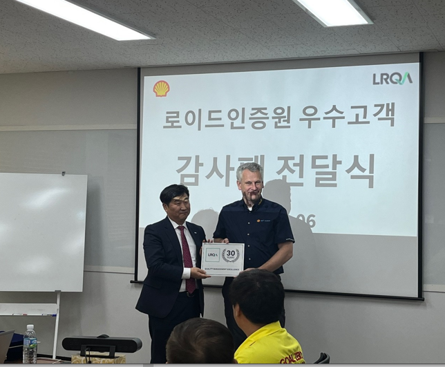 특별히 올해는 두 인증서( ISO 9001:2015, IATF 16949:2016, ISO 14001:2015) 인증에 대한 각각 20주년과 30주년 되는 발행을 맞이하여 부산에 위치한 한국쉘석유 대회의장에서 한국쉘석유 라머스 예룬 피터 대표이사와 LRQA KOREA 이일형 대표이사를 비롯한 관계자들이 함께 자리한 가운데 환경  품질을 위해 지속적인 노력에 대해 축하 및 기념하는 자리를 함께하였습니다.
