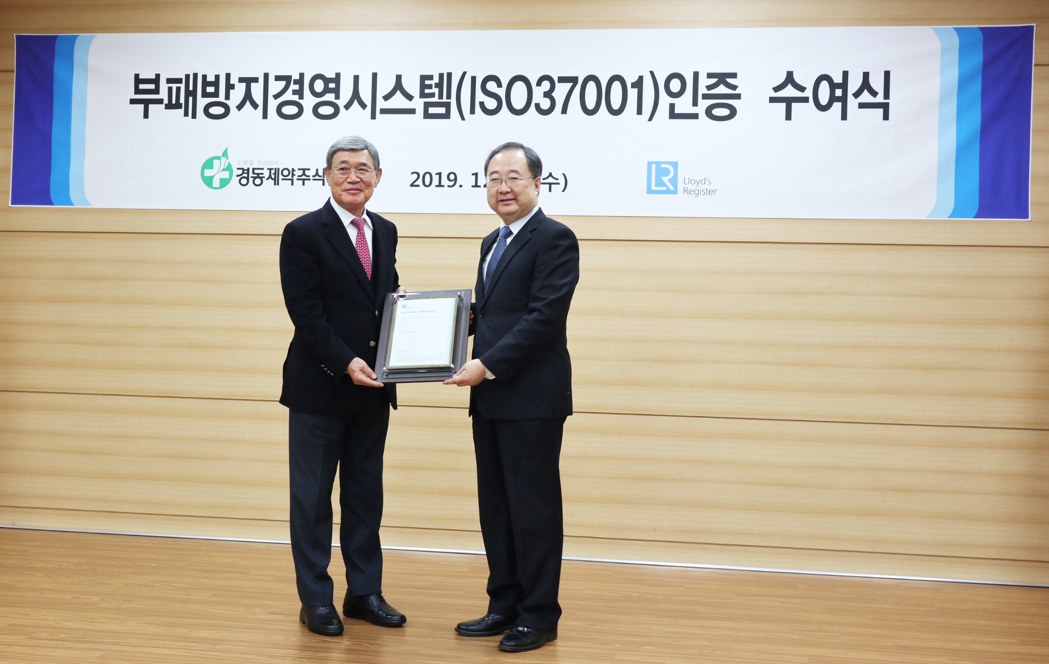 1975년 창립 이래로 글로벌 제약 기업으로 성장하고 있는 경동제약이 ISO 37001 부패방지경영시스템을 인증 받았습니다. 이를 기념하기 위해 12월 11일, 서울에 위치한 경동제약 본사에서 인증수여식이 진행되었습니다.