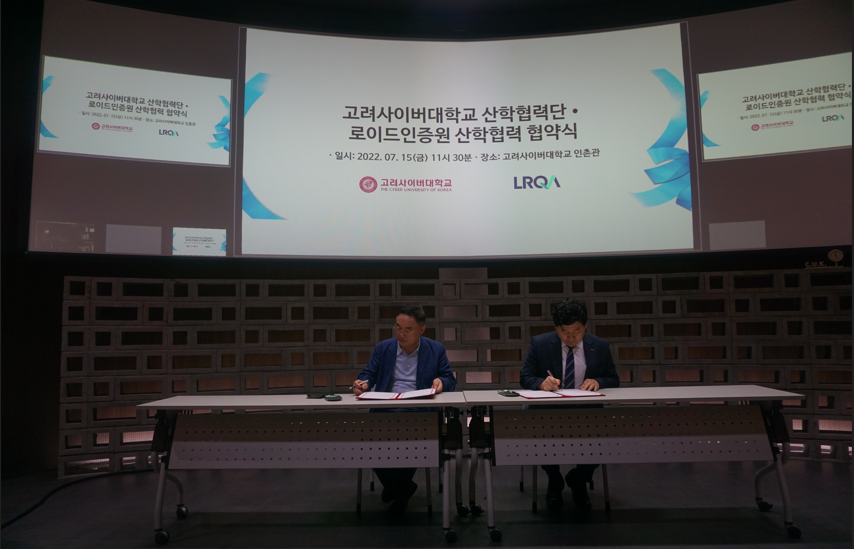 로이드인증원(LRQA)과 고려사이버대학교 산학단과 양기관의 역량을 기반으로 하는 교육 사업 협력을 약속하는 업무협약을 체결하였습니다.